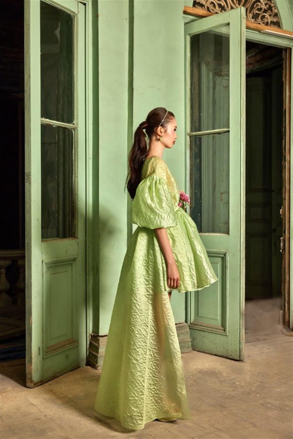 This dress is handmade from embossed floral tulle. This dress has a super flattering silhouette that creates a dreamy princess look. It features a V-neck, puff sleeves and dropped shoulder details. There are 2 layers of shirred embossed tulle under the skirt. And it is satin lined. Invisible zipper closure in the middle of the back.